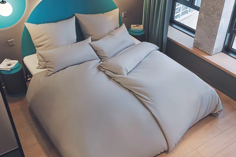 Zum Kernsortiment der „longlife textiles“ zählt etwa die Hotelbettwäsche „Vaduz“. Das Mischgewebe besteht aus 80 Prozent Baumwolle und 20 Prozent Polyester. Das Glattsatin in Silbergrau oder Weiß wiegt etwa 145 g/m². Wie alle Produkte aus der Sparte "longlife textiles" trägt die Bettwäsche das Label "OEKO-TEX Made in Green" und den Grünen Knopf. Das bietet laut Hersteller Sicherheit bei der Einhaltung des LkSG sowie entsprechender EU-Vorgaben.