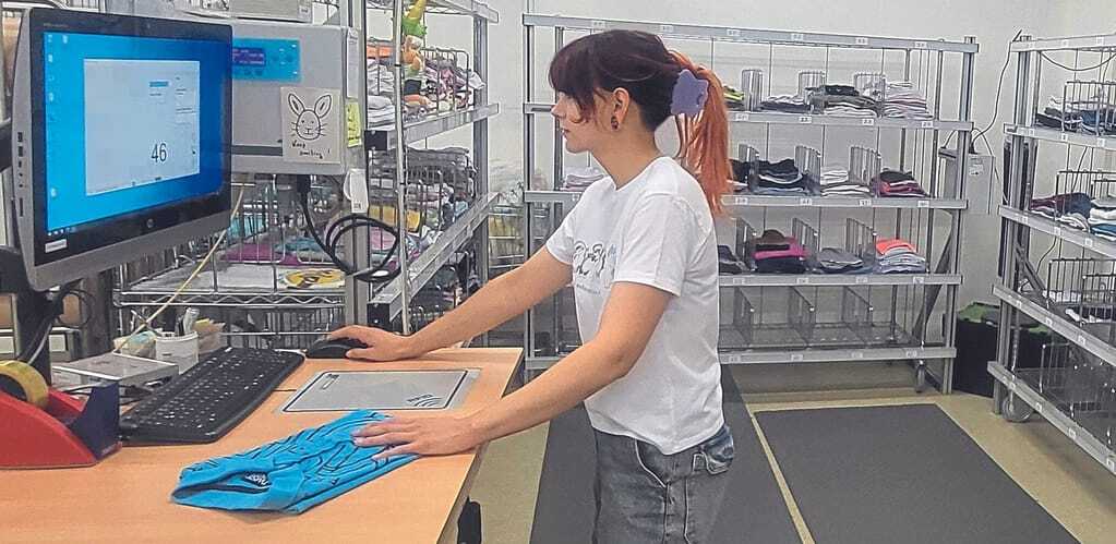 „Im Prinzip sind wir so etwas wie ein übergroßer Haushalt, allerdings mit besonderen Artikeln, wie Schutzanzügen und einem hohen Anteil an Desinfektionswäsche. Wir haben ein Leasingangebot für Bettwäsche, Frottierwaren, Lätzchen und Inkontinenzunterlagen, das sehr gut angenommen wird. In erster Linie bearbeiten wir persönliche Wäsche, die sortiert und händisch gelegt wird. Das sind Textilien der Klient/innen in unseren Wohnheimen und dem ambulant betreuten Wohnen. Ein großer Kunde ist das eeWerk, unsere Eben-Ezer-eigene Behindertenwerkstatt. Außerdem arbeiten wir für andere Behindertenwerkstätten, zwei Altenheime und kleinere Einrichtungen wie Kindergärten oder Restaurants“, erklärt die Wäschereileiterin.