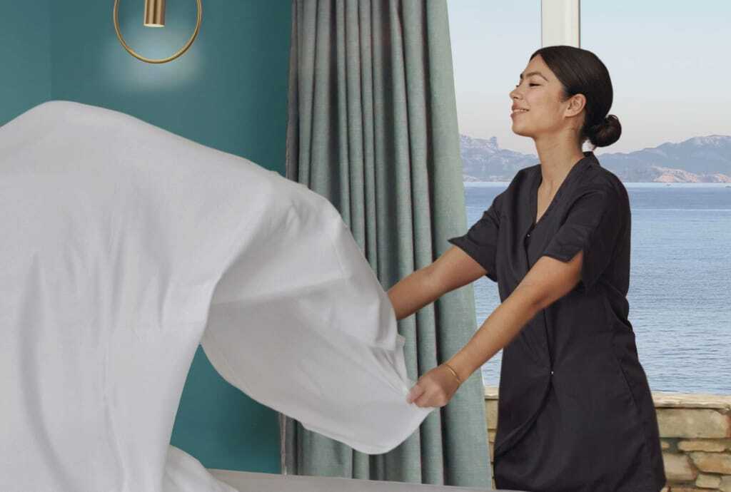 Textildienstleister Elis setzt auf Wiederverwendung: Der Polyesteranteil in der Bettwäsche ist laut Unternehmen jetzt vollständig aus recyceltem Material.