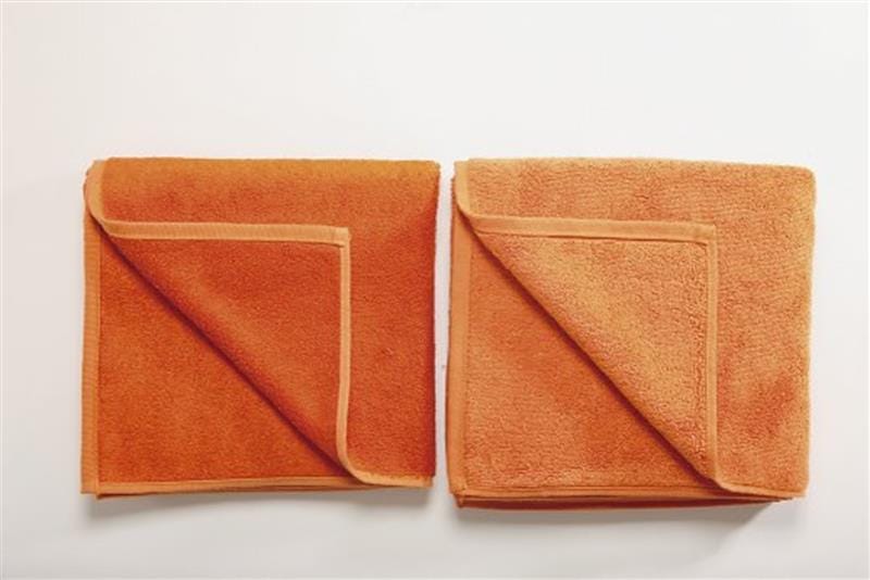 Intensive Farben bei Lenzing Modal Frottee (links) im Vergleich zu Frottee aus Baumwolle (rechts). Foto: Grebe/Lenzing AG - © E. Grebe/Lenzing AG