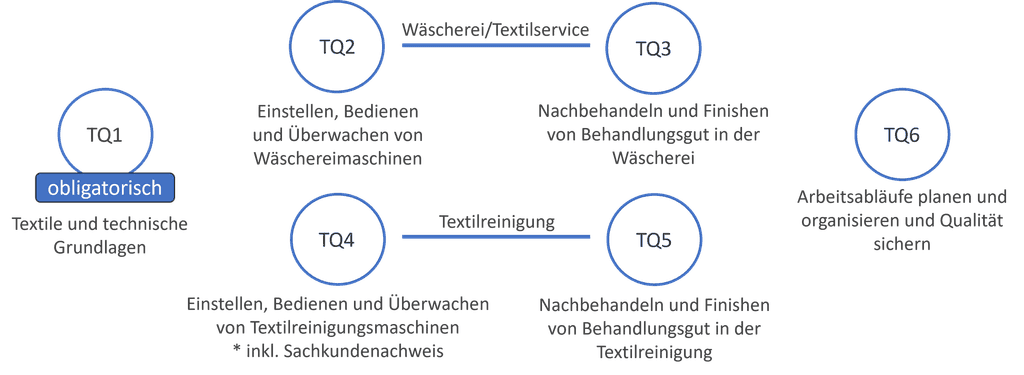 - TQ5 – Finish in der Textilreinigung: Nachbehandeln und Aufbereiten gereinigter Textilien.