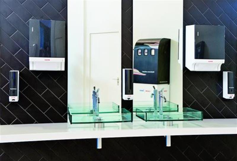 Zugleich eröffnet das Spenderkonzept mit austauschbaren Blenden eine Werbeplattform. Die Elemente der Linie verfügen laut Anbieter über die bewährte Spendertechnik, sind aus hochwertigen Materialien gefertigt und sollen zuverlässigen Hygieneschutz bieten. Die Waschraumlinie wird als Komplettsystem im Mietservice angeboten: Alle Spenderelemente werden vom Unternehmen montiert, regelmäßig ausgefüllt und gewartet.