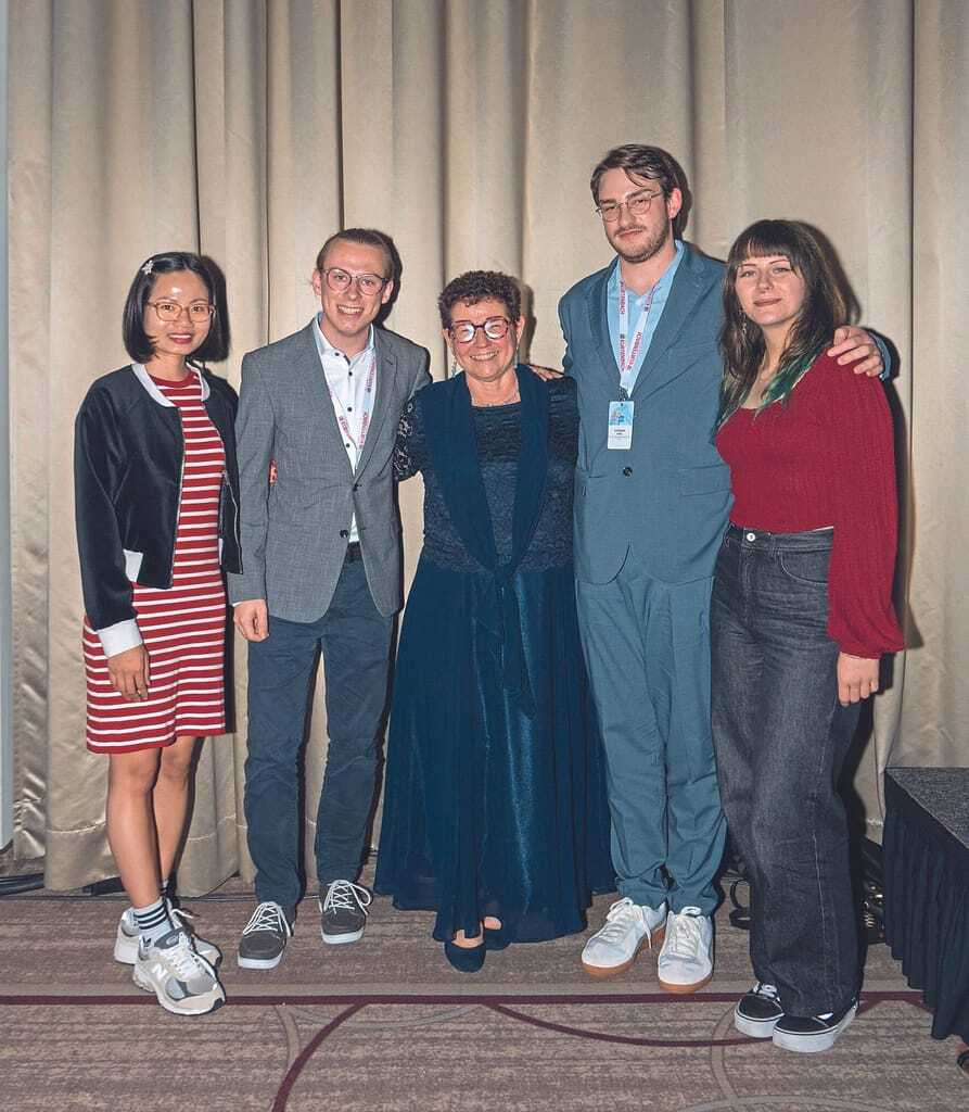 Die Gewinner der Textilreiniger-Meisterschaft (v. l.): Thi Phuong Ngo, Kimon Schulz, DTV-Präsidentin Beate Schäfer, ­Alexander Kohl und Mara Ladewig.