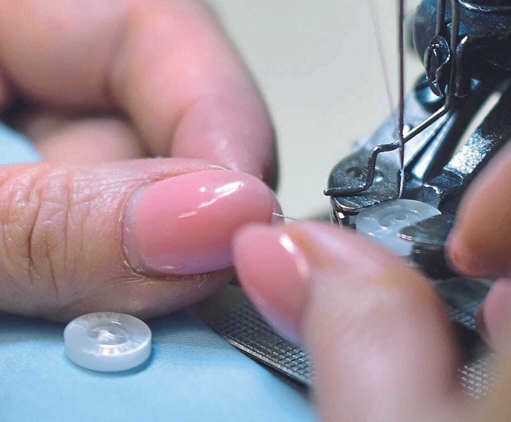Kunden bekommen den 120 g/m² dichten bügelleichten Baumwollstoff in den Farben Weiß, Hellblau oder Dunkelblau. Passend dazu können die weißen oder dunkelblauen Knöpfe in einer modernen oder gedoppelten Knopfleiste angereiht werden, die Vario-Manschette in einer geraden oder runden Form und das Hemd mit Hai- oder Kent-Kragen bestellt werden. Außerdem lassen sich auf Wunsch eine Brusttasche annähen sowie ein Monogramm einsticken. Damit das Maßhemd wie angegossen sitzt, wählen Kunden zwischen zwei Passformen aus: körperbetont oder komfortabel. Wenn Mann ein „Bäuchlein“ bekommt, sagt Janz, sitzen viele Hemden nicht mehr optimal. Der Stoff seiner Maßhemden wird in solchen Fällen vorne ein bisschen länger zugeschnitten als hinten.