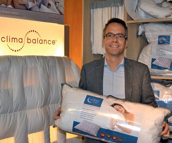 Schulz: Für die Bereiche Gesundheitswesen und Altenpflege haben wir mit der Multizonendecke gerade eine innovative Produktneuheit auf den Markt gebracht. Sie reagiert sozusagen auf die verschiedenen Wärmeabgabezonen des Körpers. Im schnell auskühlenden Kopf- bzw. Hals- und im Fußbereich bietet sie eine höhere Wärmeisolation als im mittleren Bereich, wo der deutlich wärmere Torso des Körpers liegt. Aufgrund ihrer besonderen Konfektion schmiegt sich die Bettdecke außerdem der Anatomie des Körpers an, wodurch Wärmeverluste vermieden werden. Zu dieser Decke gibt es ein Multiformkissen, das sich sehr gut den individuellen Schlafgewohnheiten anpassen lässt.
