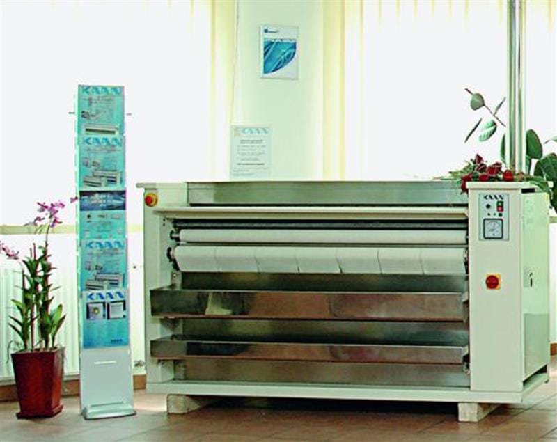Seit über 20 Jahren bietet Kaan, Blumau (Italien), ein breites Angebot an trocknenden Bügelmaschinen. Die verschiedenen Bügelbreiten und Walzendurchmesser erlauben laut Hersteller einen jeder Anforderung angepassten Arbeitsgang. Die Mangeln sind mit 320, 350, 500 und 700 mm Durchmesser und in Walzenlängen von 130 bis 310 cm erhältlich. Wählbar sind drei verschiedene Beheizungsarten: elektrisch, gas- oder dampfbeheizt. Leichte Bedienbarkeit, einfache Technik und stufenlose Regelung von Temperatur und Geschwindigkeit zeichnen die Maschinen laut Anbieter aus. Individuell und flexibel gestaltete Gerätegrößen werden nach Herstellerangaben von der Entwicklungsabteilung kurzfristig geplant und ausgeführt. Die Bügelmaschinen werden laut Unternehmen nach den neuesten technischen Erkenntnissen gebaut und ermöglichen eine geräuscharme Arbeitsweise. Mit einer trocknenden Bügelmaschine entfällt ein Arbeitsgang, und zwar das Umladen von der Waschmaschine in den Trockner. Mit einem Energieaufwand von nur 2/3 gegenüber eines üblichen Trockners soll mit den Mangeln gebügelt und getrocknet werden können. Aufhängen, Abnehmen, Zusammenlegen und Einspritzen der Wäsche entfällt. Das Bügelgut soll auf diese Weise geschont werden, da die Bügelbänder die Wäsche transportieren und nicht pressen, so dass sich auch der Wäscheverschleiß reduziert.