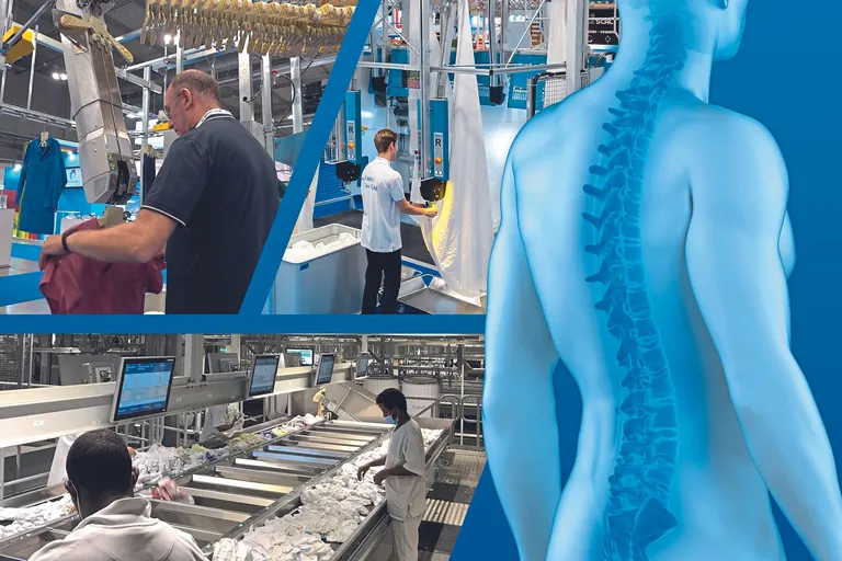 Wäschereien profitieren von leistungsfähigen, gesunden Mitarbeitern. Eine ergonomische Gestaltung des Arbeitsplatzes und der Prozesse sollten daher im Fokus stehen. Das fängt nicht erst in der Produktionshalle, sondern schon bei der Entwicklung der Maschinen an.