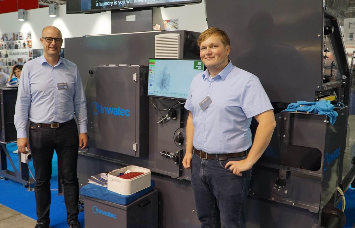 Mads Andresen (li.) und Finn Hahn von Inwatec präsentierten eine Wäschesortieranlage inklusive Roboter.
