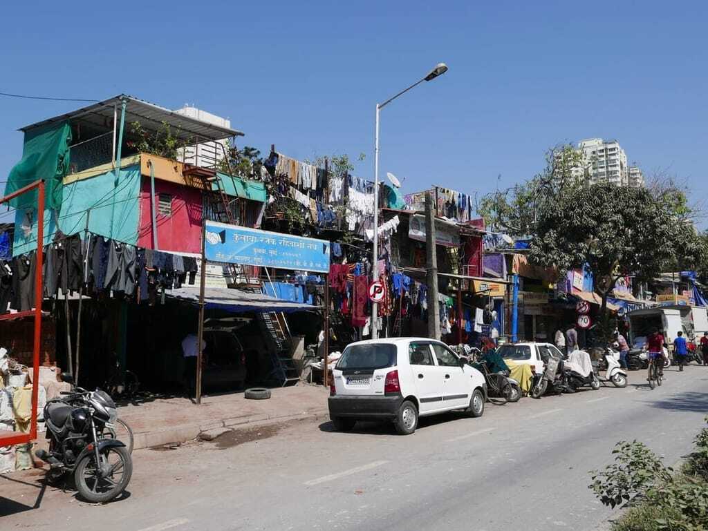 Hinter der bunten Häuserfront verbirgt sich Mumbais Großwäscherei.