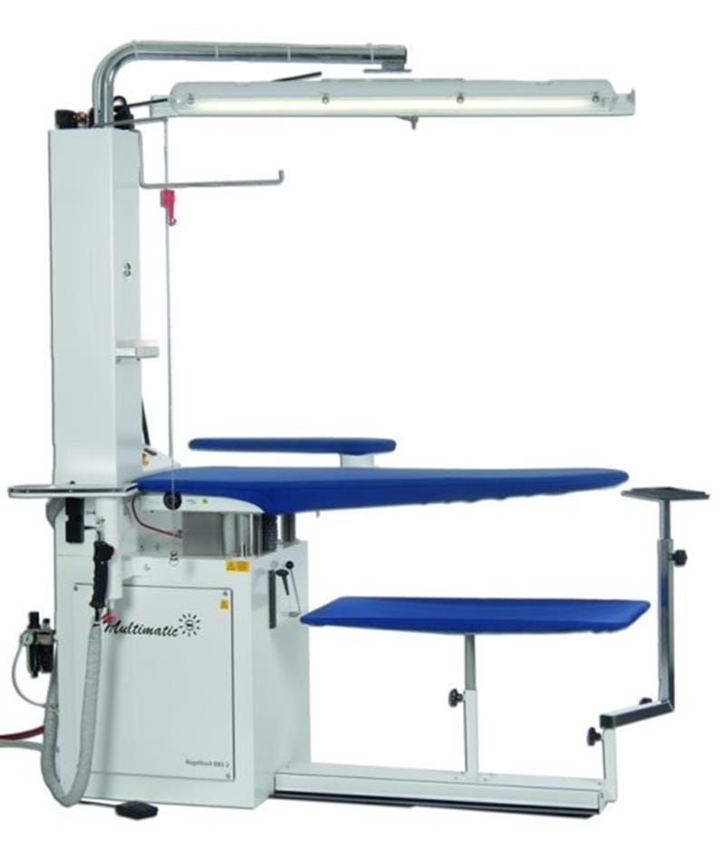 Die Bügelstation BBS2 ist laut Multimatic eine leistungsstarke Bügelstation mit guter Saug-Blas-Leistung, regelbar beheizter Bügelfläche, pneumatisch stufenloser Höhenverstellung (75 bis 95 cm), dosierbarer Blaseinrichtung und schwenkbarem Ärmelbrett bei automatischer Absenkung der Bügelfläche. Sie beinhaltet außerdem praktisches Zubehör wie Kleiderbügelhalter, Abhängevorrichtung und Ablagekästen.