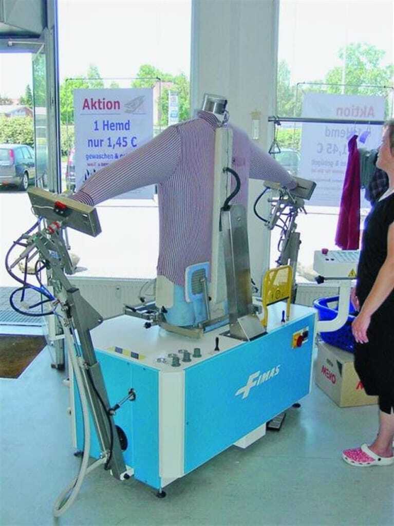 Nach den Erfahrungen des Unternehmens hat der neu entwickelte Hemden-Spezialfinisher Fimas 389 eine hohe Akzeptanz beim Kunden erfahren. Dieser Finisher für den Hemdenservice bewährt sich laut Anbieter in zahlreichen deutschen Betrieben. Die jeweilige Länge des zu bearbeitenden Hemdes wird über eine Fotozelle erfasst, entsprechend wird die Streckfunktion automatisch zugeschaltet. Auf dem Finisher können Hemden aus praktisch allen Materialien und in allen Schnitten und Größen bearbeitet werden.