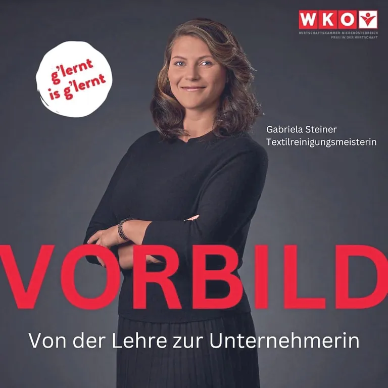 Gabriela Steiner ist Inhaberin der Kleiderreinigung Steiner im österreichischen Gmünd und eine ideale Besetzung als Role Model ihrer Zunft. Dass sie für alle Frauen in der Wirtschaft ein echtes Vorbild sein kann, bestätigt auch die Wirtschaftskammer Niederösterreich im Rahmen ihrer Kampagne "G'lernt is g'lernt".