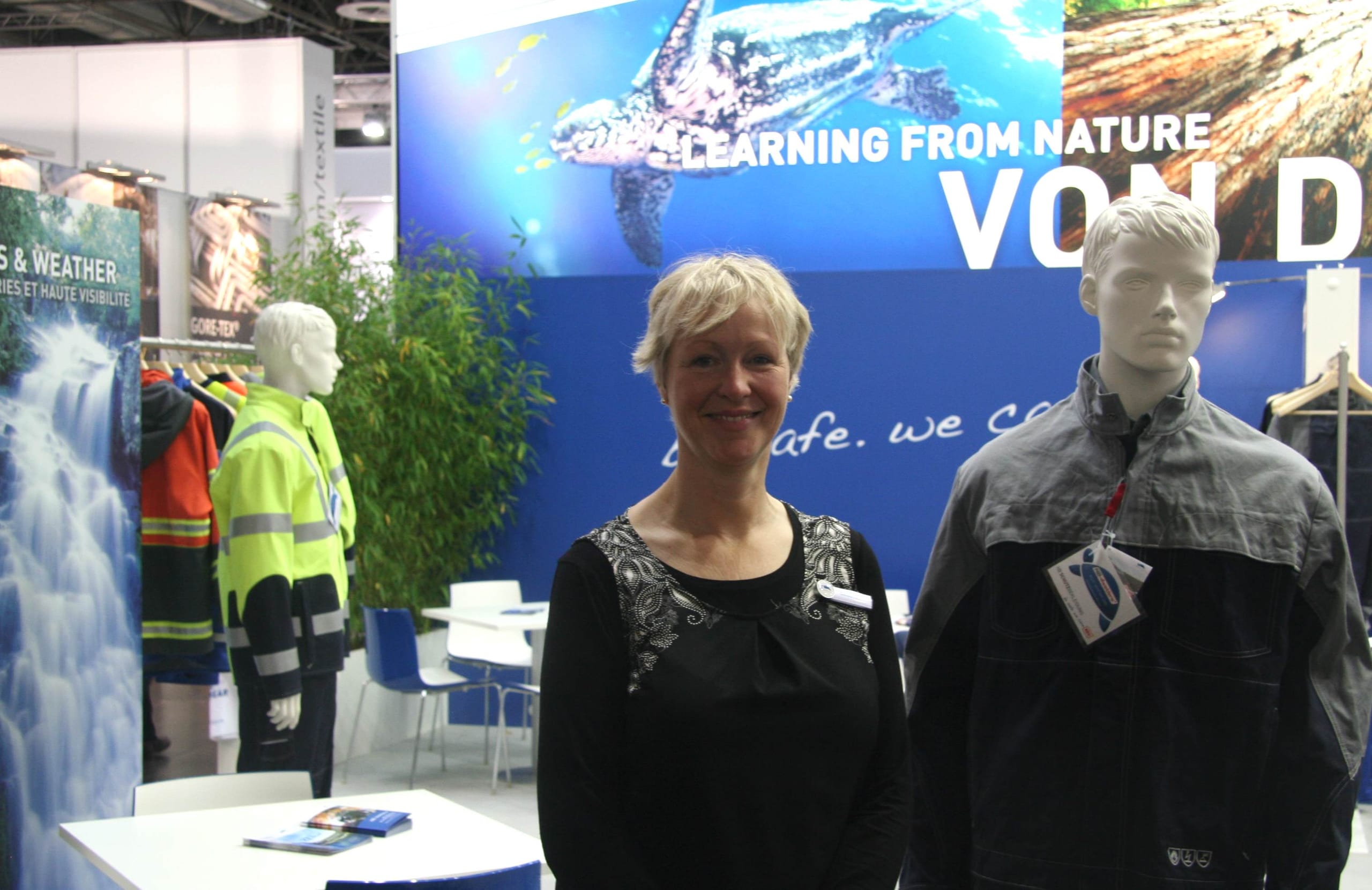 © SchönhaarClaudia Horn von HB Schutzbekleidung freute sich, auf dem neuen Messestand auch einige neue Produkte und Services vorstellen zu können. -