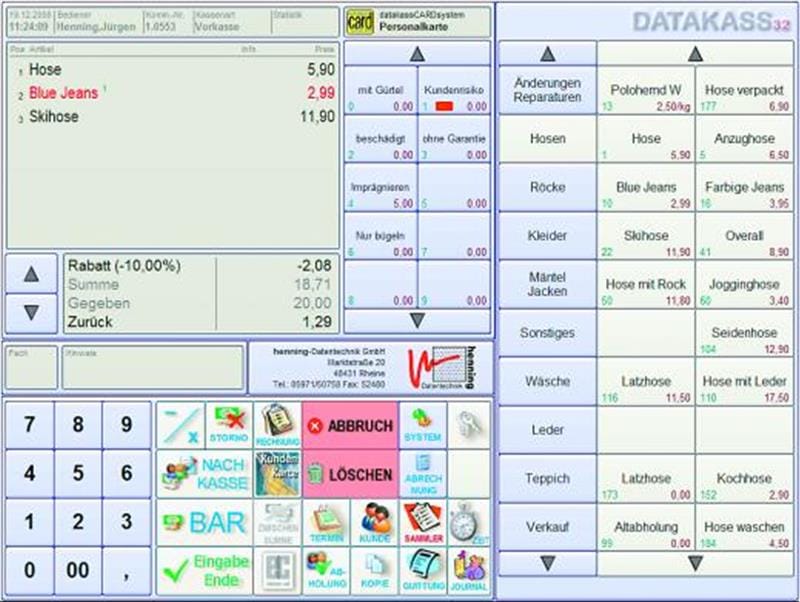Das Datakass-System der Henning-Datentechnik GmbH aus Rheine ist nun seit 18 Jahren auf dem Markt. Laut Anbieter wurde es kontinuierlich nach den Bedürfnissen der Kunden weiterentwickelt. Da die Anforderungen an eine moderne EDV in den letzten Jahren enorm gestiegen sind und die Basis eines 16-bit-Systems nicht mehr ausreichend war, wurde es Zeit für einen Generationswechsel.