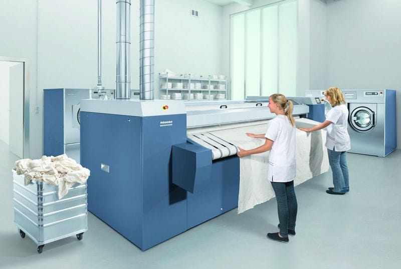 ◆ Für Höchstleistungen beim Wäschefinish stehen die neuen Mangeln von Miele, die Mitte 2012 auf den Markt kommen sollen. Sie können nach Herstellerangaben mehr als 200 kg Wäsche pro Stunde bearbeiten (Leistung kg/h abhängig von der Maschinengröße) und beinhalten zahlreiche Innovationen. Dazu gehört der flexible Anpressdruck der Walze, der auf einem großen Display mit Touchbedienung jederzeit verändert werden kann. So können zum Beispiel mehrlagige Textilien wie Bettwäsche oder schwere Baumwolltischdecken ebenso schnell gemangelt werden wie dünnere Stoffe, verspricht das Unternehmen. Individuell lassen sich auch Temperatur und Drehzahl der Walze einstellen. Außerdem informiert das Display, wenn die Mulde gereinigt oder gewachst werden muss.