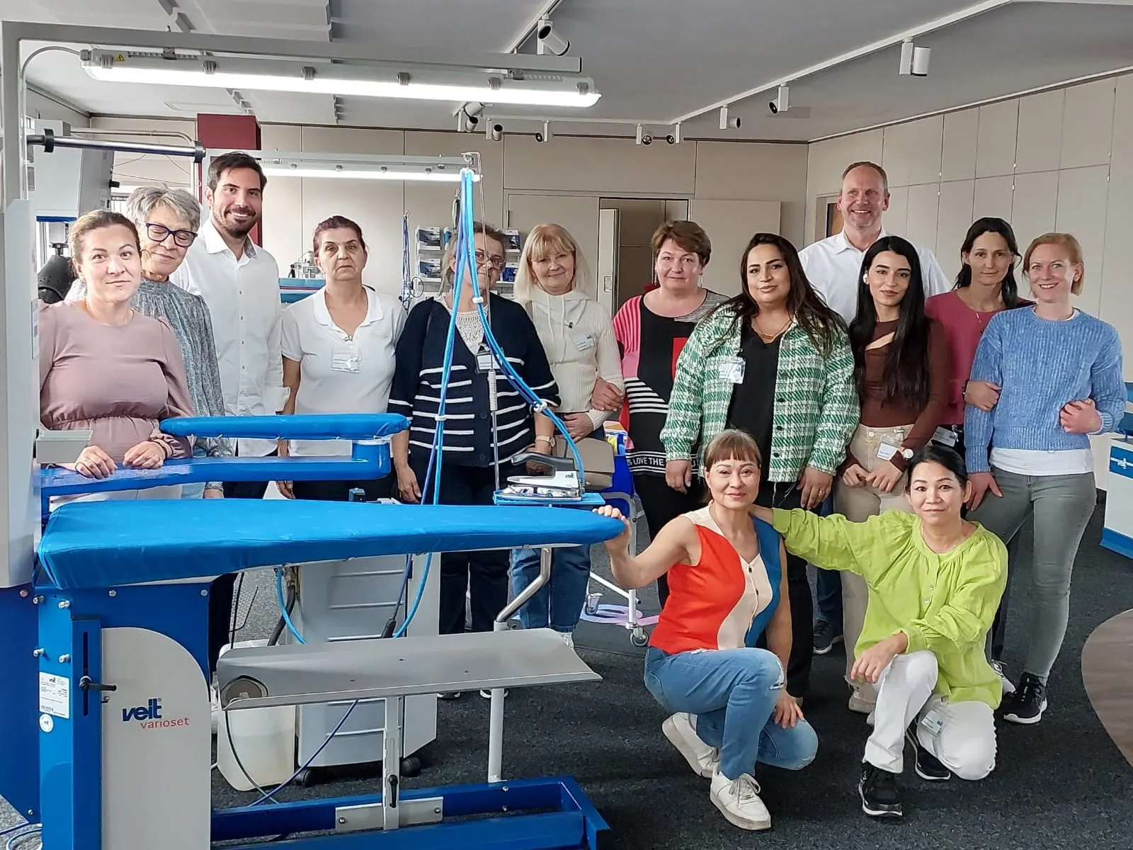 Wie bügelt man richtig? Darum ging es in einem Seminar des Bayerischen Textilreinigungsverbands im März 2025. Veranstaltungsort war die Firma VEIT in Landsberg am Lech.