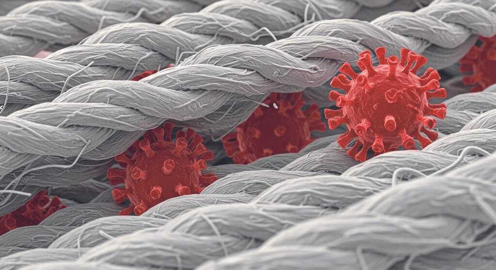 Während der Corona-Pandemie zeigte sich, dass Textilien, die mit antiviralen Wirkstoffen ausgerüstet werden, dazu beitragen können, dieses Übertragungsrisiko zu reduzieren.
