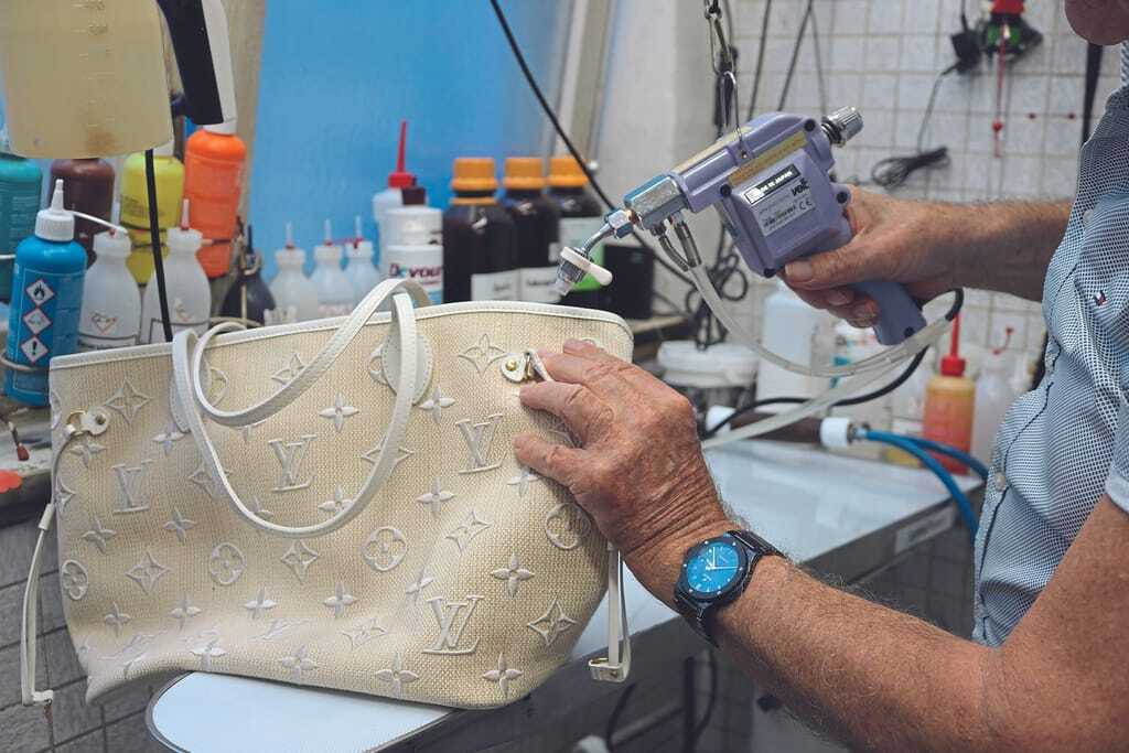 „Ich hatte mal eine völlig mit Rotwein verfleckte Louis-Vuitton-Handtasche bei mir“, erzählt Lausenhammer. „Zuvor kam sie in verschiedenen Louis-Vuitton-Stores. Alle haben sie abgelehnt. Ich hab sie ganz normal behandelt. Das war kein Hexenwerk, nur Erfahrung und Sorgfalt.“