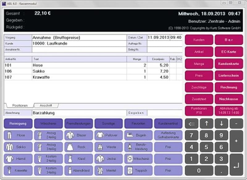 Die Firma Kurtz Software hat speziell für die Bedürfnisse von Textilreinigungen und kleinen bis mittelständischen Wäschereien entsprechende Kassen- und Softwarelösungen entwickelt.