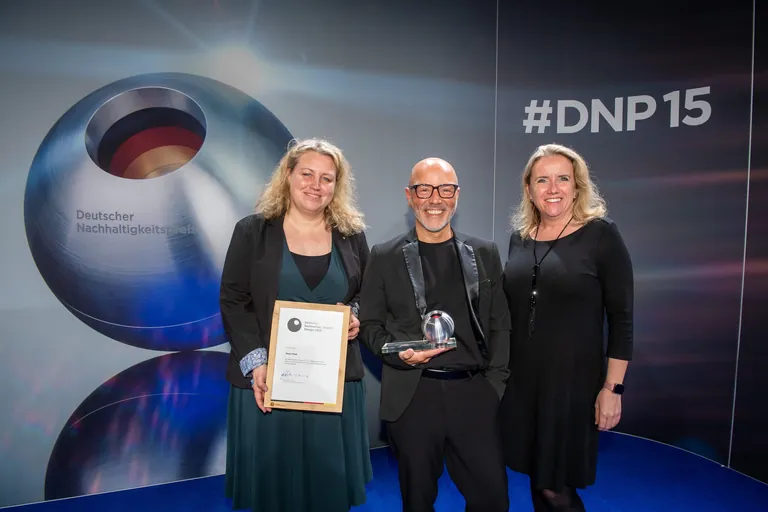 Textildienstleister Mewa hat den Deutschen Nachhaltigkeitspreis verliehen bekommen. Die Arbeitskleidung "Mewa Peak" schont gleich in mehrfacher Hinsicht die Ressourcen – auch dank Sharingsystem.