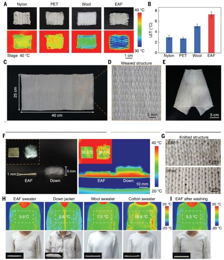 Der Test zeigt, dass das EAF-Textil die Wärme ähnlich gut isoliert wie eine fünfmal so dicke Daunenjacke. Nicht zuletzt hielt der EAF-Pullover einer Maschinenwäsche stand, ohne sich zu verändern – eine der wichtigsten Voraussetzungen, damit das neue Material tatsächlich in den täglichen Gebrauch kommen kann. EAF-Fasern lassen sich färben und billiger als andere Garne herstellen, schreiben Zhizhi Sheng und Xuetong Zhang in einem Kommentar zu ihrer Studie in der Zeitschrift "Science". Bis Thermobekleidung aus EAF in den Läden hängt, könnte es dennoch eine Weiledauern. Zuerst muss das Verfahren für die Massenproduktion optimiert werden.