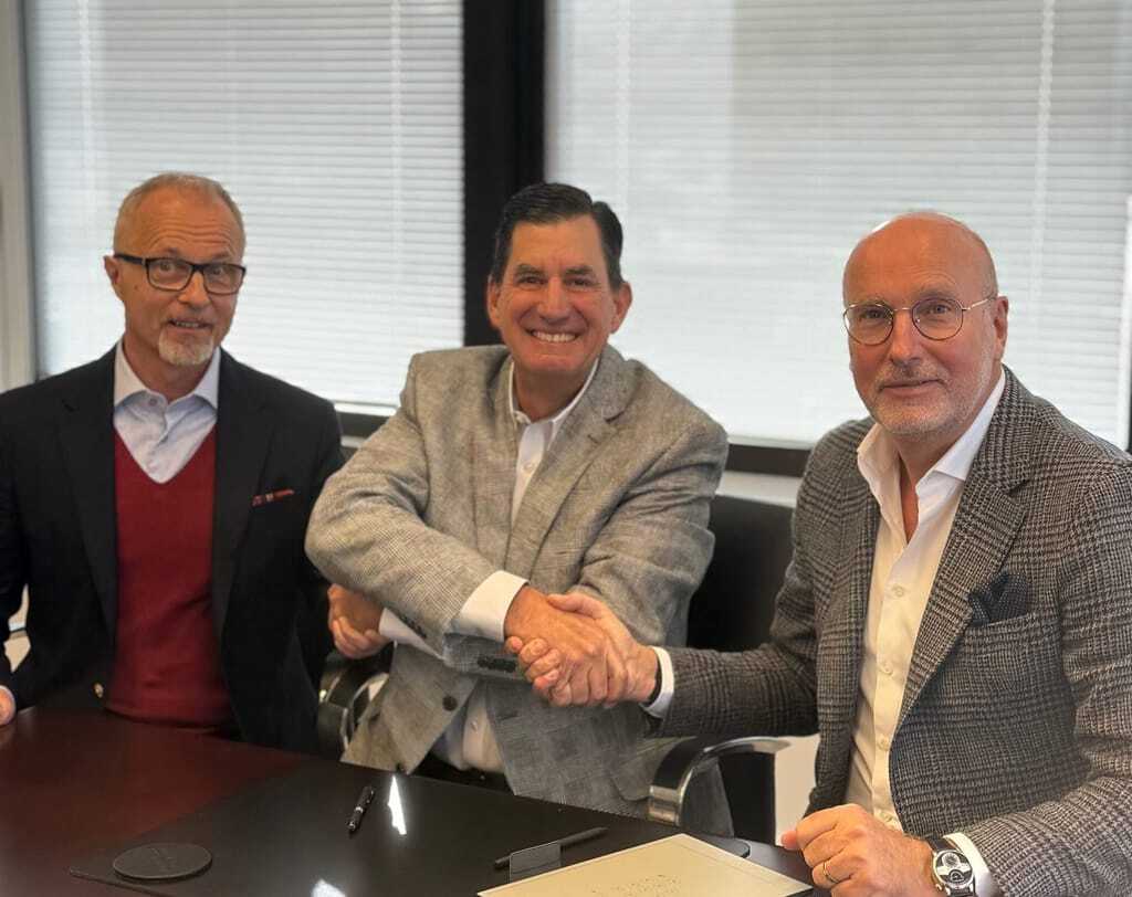 Übernahme mit Handschlag besiegelt (v.li.): Tony Biela (Präsident von JENSEN North America), J.B. Werner (CEO von G.A. Braun), Jesper Munch Jensen (CEO der JENSEN-GROUP).
