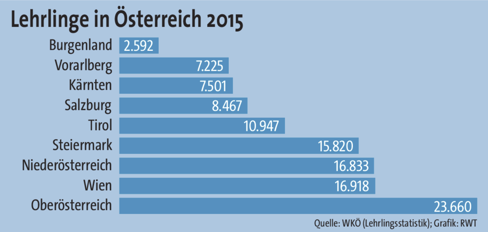 Statistik Oberösterreich 2015 mit den meisten Lehrlingen