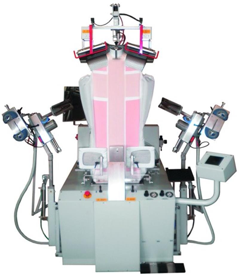 Die seitliche und hintere pneumatische Haltevorrichtung für den unteren Bekleidungsbereich wird über eine Fotozelle gesteuert. Der neu entwickelte LCD-Touchscreen-Computer für die Steuerung aller Vorbereitungsphasen und Bügelfunktionen soll eine leichte und übersichtliche Handhabung garantieren, wie beispielsweise die Möglichkeit, per Tastendruck zwischen Lang- und Kurzarmspannung zu wählen, ohne einen Umbau am Gerät vornehmen zu müssen.