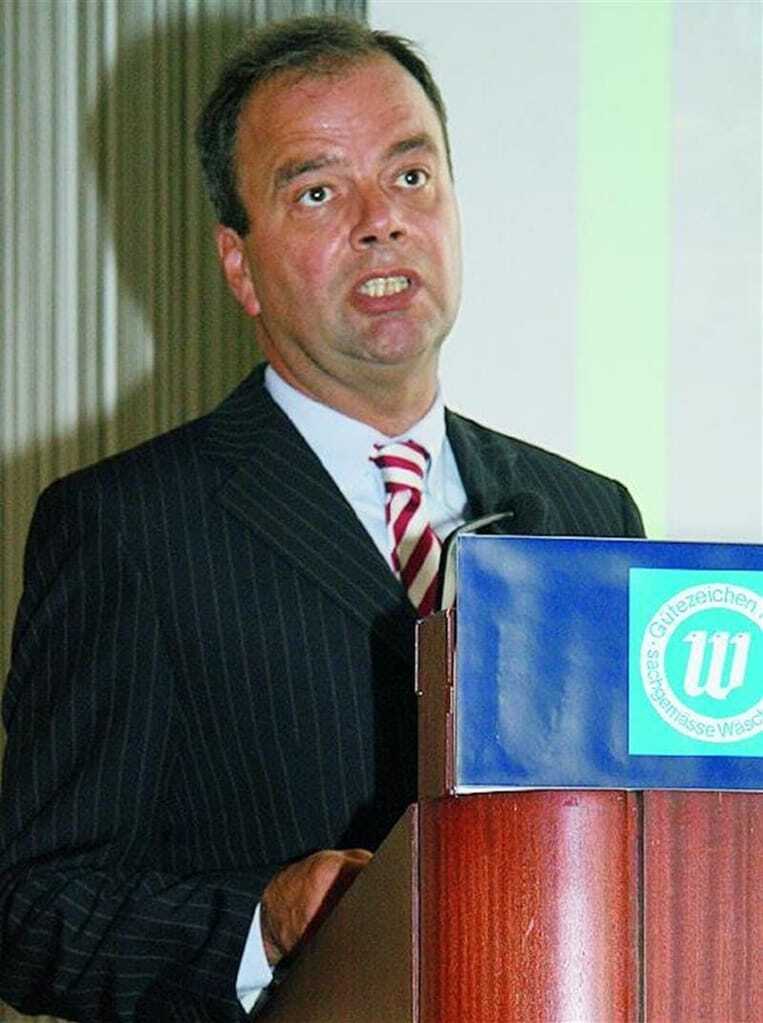 Holger Wendt, Geschäftsführer von Wendt Reinigungs- und Wäschereitechnik, Loccum, gab Tipps dafür, wie eine Wäscherei Pressartikel wirtschaftlich pressen kann. Mit einer Unipress USCS-G geschieht das Rumpfpressen und Ärmelfinishen in einem Arbeitsgang. Dabei bricht der Dampfstoß die Knitter. Anschließend werden die Ärmel über Heißluft getrocknet. Der gesamte Pressvorgang dauert rund 33 Sekunden. Bei der Stückzahl von 400 Kitteln pro Tag kostet nach Wendts Wirtschaftlichkeitsberechnungen eine Bearbeitung 57 Cent. Die Anschaffung des Gerätes amortisiere sich in 1,2 Jahren. Potenzielle Pressartikel ergeben sich für Wäschereien nach Wendts Einschätzung v.a. über den wachsenden Altenheimmarkt.