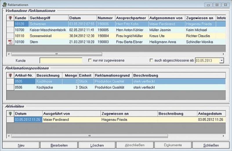 Es soll auf einen Blick ersichtlich sein, welche Reklamationen noch offen sind und in welchem Bearbeitungsstatus sich diese befinden. Auch die gesamte Reklamationshistorie eines einzelnen Kunden lässt sich darstellen. So ist nachvollziehbar, wann, wie oft und warum ein Kunde reklamiert hat. Gibt es beispielsweise bereits einen konkreten Kundenwunsch, können laut SoCom Reklamationen zur weiteren Bearbeitung mit Hinweisen versehen und einzelnen Mitarbeitern zugeordnet werden. So unterstützt das Modul "Reklamationsverwaltung" den komplexen Prozess von der Reklamationsannahme über die interne Bearbeitung bis hin zur Informationsweitergabe und die serviceorientierte Erledigung.