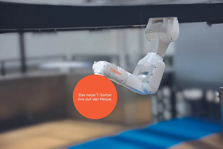 Automatisierung ist eines der Topthemen der Texcare. Thielen Automation zeigt eine voll automatisierte Wäschesortieranlage.