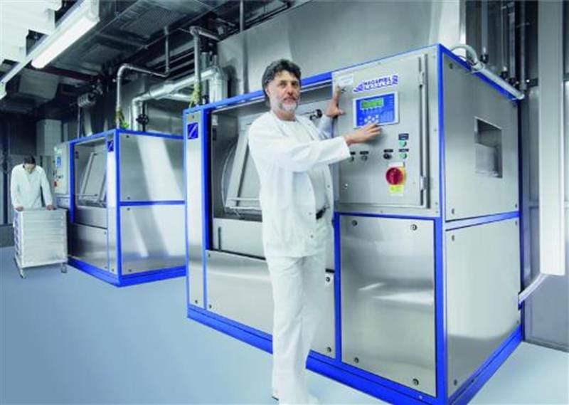 Der Anbieter von Waschtechnik Hagspiel & Dobler, Kornwestheim, setzt auf Verbesserungen seiner robusten Waschschleuderautomaten der Universa-Baureihe in den Größen 30, 40, 60, 85, 100, 140, 180 und 250 kg. Diese seit 17 Jahren gebauten Maschinen sind nun auch mit einer integrierten Wiegeeinrichtung erhältlich. Mehrteilige, integrierte Wasser-/Wärmerückgewinnungsanlagen sind ebenfalls optional bestellbar. Durch moderne Steuerelektronik kann der Frischwasserverbrauch laut Hersteller auf unter 9 l/kg gesenkt werden. Bei den Motoren, Ventilen, Lagern oder Steuerungen werden nur die Produkte deutscher Fertigung verbaut. Eine Lebensdauer von 20 Jahren und mehr gilt für die Produkte laut Hersteller als selbstverständlich.