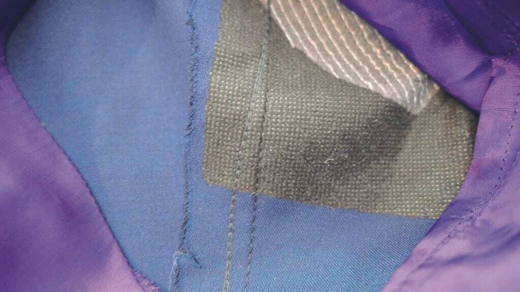 Um sich jedoch einen ordentlichen Überblick zu verschaffen, ist es erforderlich, das Futter einmal komplett zu öffnen. Ist das „Fenster“ in „das Innere“ groß genug, erscheint der Lagenaufbau der Frontfixierung. Hier sind feste bewegungsunfähige Gewebe und elastische Maschenwaren zu finden, übereinander geklebte Vliese unterschiedlicher Herkunft und pikierte Zuschnittteile. Bei der Betrachtung dieses Sammelsuriums und der Art der Fixierung kommt zwangsläufig die Frage auf, ob all die verarbeiteten Materialien pflegeharmonisch zusammengefügt worden sind.