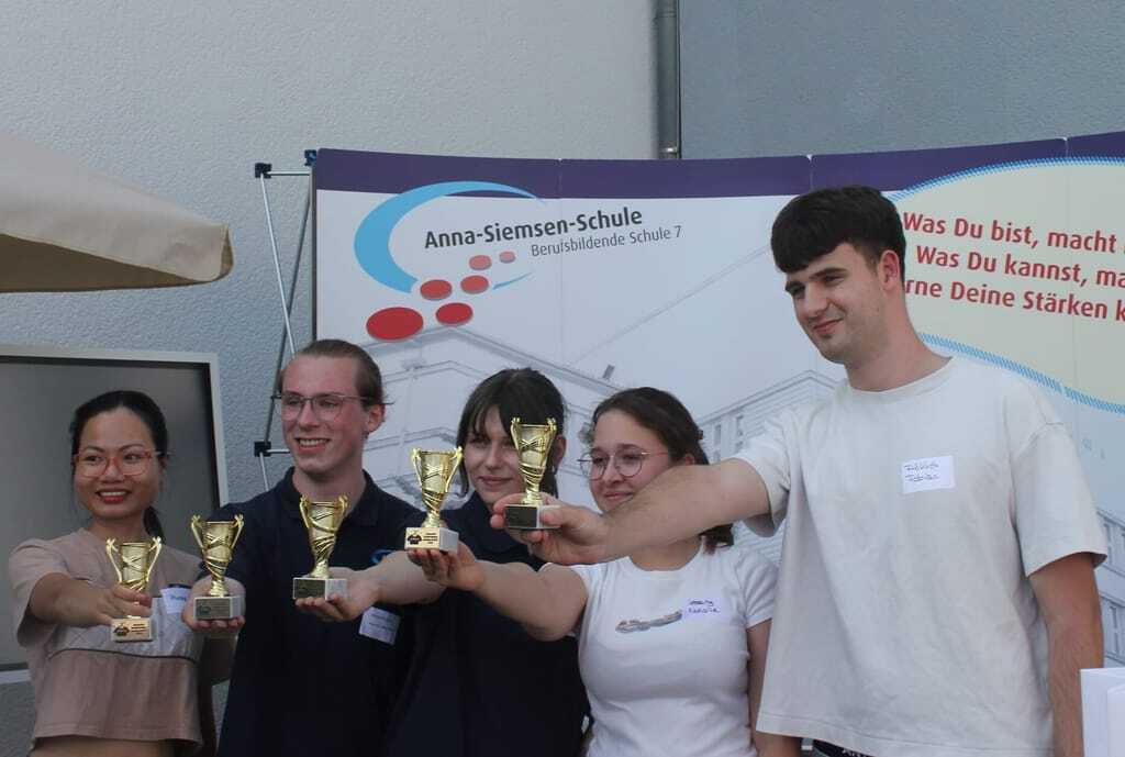 Bei einem Kahoot-Spiel testeten die Besucher/innen ihr Wissen. Die Aktionen wurden von den auszubildenden Textilreiniger/innen der Anna-Siemsen-Schule betreut.