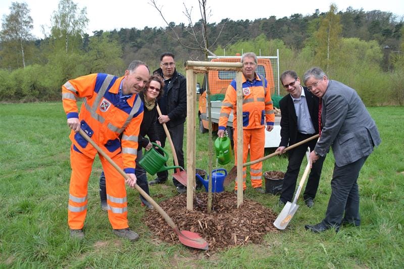Im Rahmen eines Projekts der Universität Kassel hat die Firma SCS Schneider GmbH der Gemeinde Fuldabrück drei "Junge Riesen“ gespendet und diese Bäume gemeinsam mit dem Gartenamt gepflanzt.