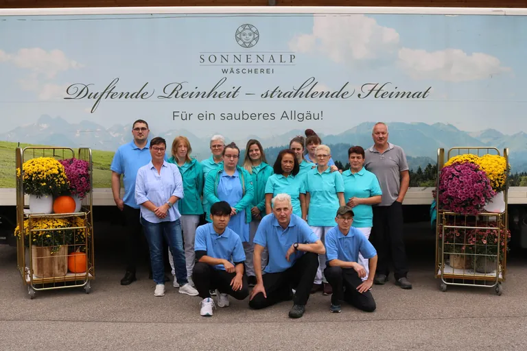 Mitten im idyllischen Allgäu, zwischen Berggipfeln und grünen Wiesen, liegt Ofterschwang. Dort findet sich auch die hochmoderne Sonnenalp Wäscherei – und das mittlerweile seit 10 Jahren. Mitte Oktober 2024 lud die Wäscherei zu Jubiläumsfeierlichkeiten ein. Für die 110 Gäste – die aus Kunden und Lieferanten bestanden – gab es eine Führung durch die Anlage, sowie einen Blick auf Vergangenes und die Zukunftsvision der Wäscherei.