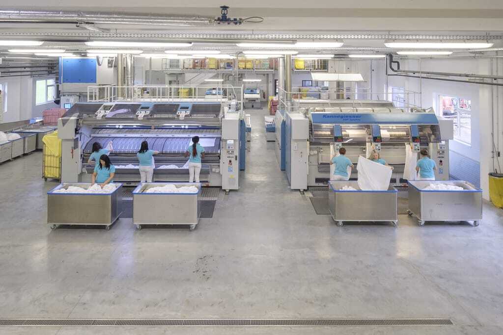 Innenansicht der Sonnenalp Wäscherei bei vollem Betrieb. - © Sonnenalp