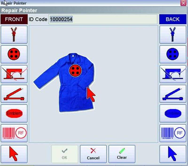 Bekleidung mit Barcodes, Data-Matrix-Codes, Single- oder Multi-read-Transpondern können gelesen werden. Durch Scanning von Eingang, Inspektion, Reparatur, Nachwäsche und Ausscanning wird laut Anbieter eine lückelose Verfolgung der Wäsche im Betrieb ermöglicht. Eine Webapplikation ist auch verfügbar, auf die Kunden und externe Mitarbeiter zugreifen können.