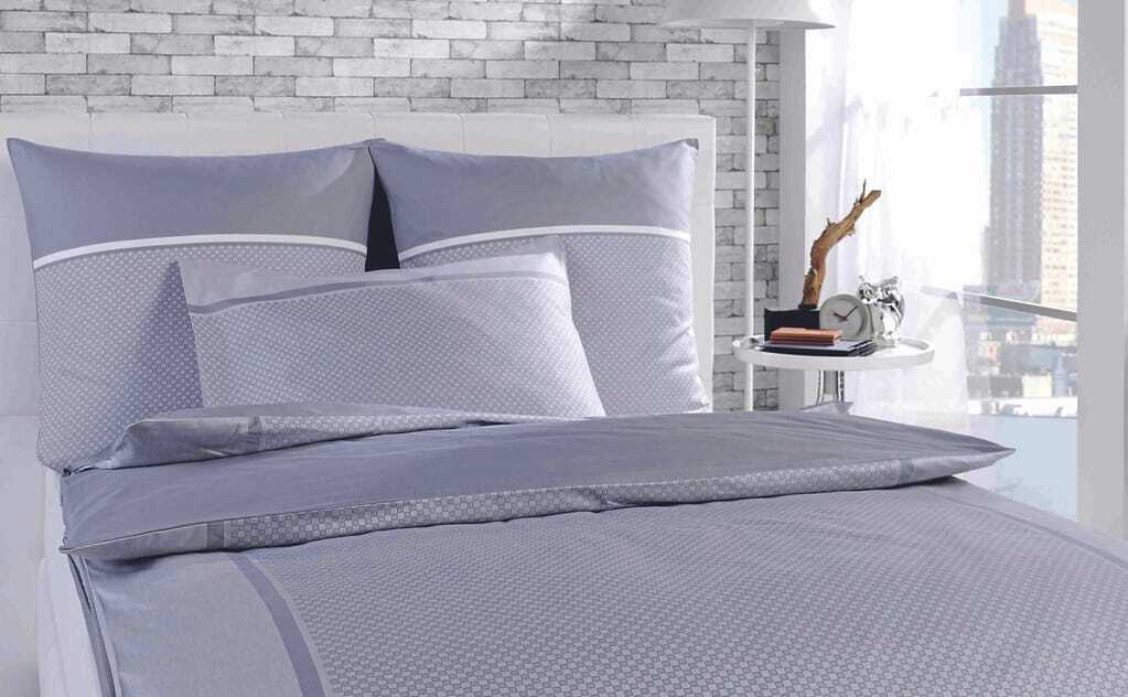 DAMINO-Kollektion „Prima“: Bettwäsche (100 Prozent Baumwolle) mit ­Schattenkaro und Satinborde. - © DAMINO