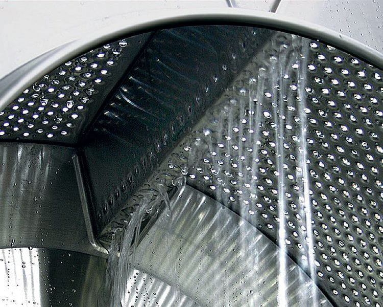 Die Mechanik wird dem Anbieter zufolge durch das Aquafall-System unterstützt: Die Perforierung an der Rippen-Unterseite pumpe das Wasser kaskadenartig in die Trommel, ermögliche schnelle Wasserzufuhr und verbessere den Spülvorgang. Das Aquamixer-System mischt Kalt- und Warmwasser. Dadurch soll die gewünschte Temperatur präzise (+/–2 ºC) erreicht werden. Nach Beendigung des Schleuderzyklus könne die Tür sofort geöffnet werden.