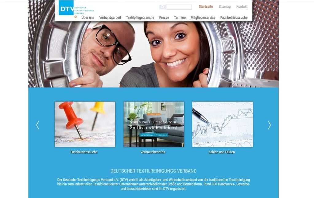 Die neue Internetpräsenz des Deutschen Textilreinigungs-Verbands (DTV) enthält neben Daten zur Branchenentwicklung und dem Geschäftsklima auch Informationen zu den unterschiedlichen Segmenten der Textilpflegebranche. Darüber hinaus zeigt sich der Verband mit all seinen Zielen, Gremien, Kampagnen, Aufgaben und Aktivitäten.
