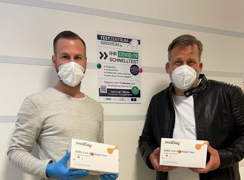 "Wir wollen Gas geben, damit unsere Kunden aus der Hotellerie und der Gastronomie wieder sicher öffnen können", sagt Sebastian Meuter. Er ist einer der Betreiber des neuen Corona-Schnelltestzentrums gegenüber des Sinsheimer Rathauses. Zusammen mit Sascha Thede hat er das Testzentrum am 10. Mai 2021 an den Start gebracht. Einen medizinischen Hintergrund haben die beiden allerdings nicht. Meuter ist Geschäftsführer eines Textilservices, Thede ist Betriebsleiter eines Cafés. Eines verbindet allerdings beide: Durch die Corona-Pandemie kamen ihre Geschäfte nahezu vollständig zum Erliegen.