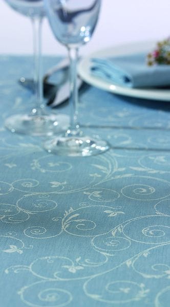 3 Wer festliche Tischwäsche braucht und auf der Suche nach etwas Besonderem ist, kann bei Wäschekrone fündig werden. Das Traditionshaus hat sein Programm für die feierliche Tafel weiter ausgebaut. Neu im Programm ist eine Tischwäscheserie aus Halbleinen-Damast. Dabei wurde in den edlen Stoff ein filigranes Rankenmotiv schussbunt eingewebt. Das Ergebnis: Der Leinencharakter kann sich entfalten und bewirkt einen Ton-in-Ton-Effekt. Auf der Rückseite ist die Tischwäsche etwas heller als auf der Oberseite und kann beidseitig verwendet werden. Das soll dem Gastgeber Spielraum für optische Raffinessen verschaffen, beispielsweise bei der Eindeckung mit Mitteldecken, Tischläufern oder Stoffservietten. Außerdem gibt es die Tischwäscheserie durchgängig unifarben, wodurch sich weitere Kombinationsmöglichkeiten eröffnen.