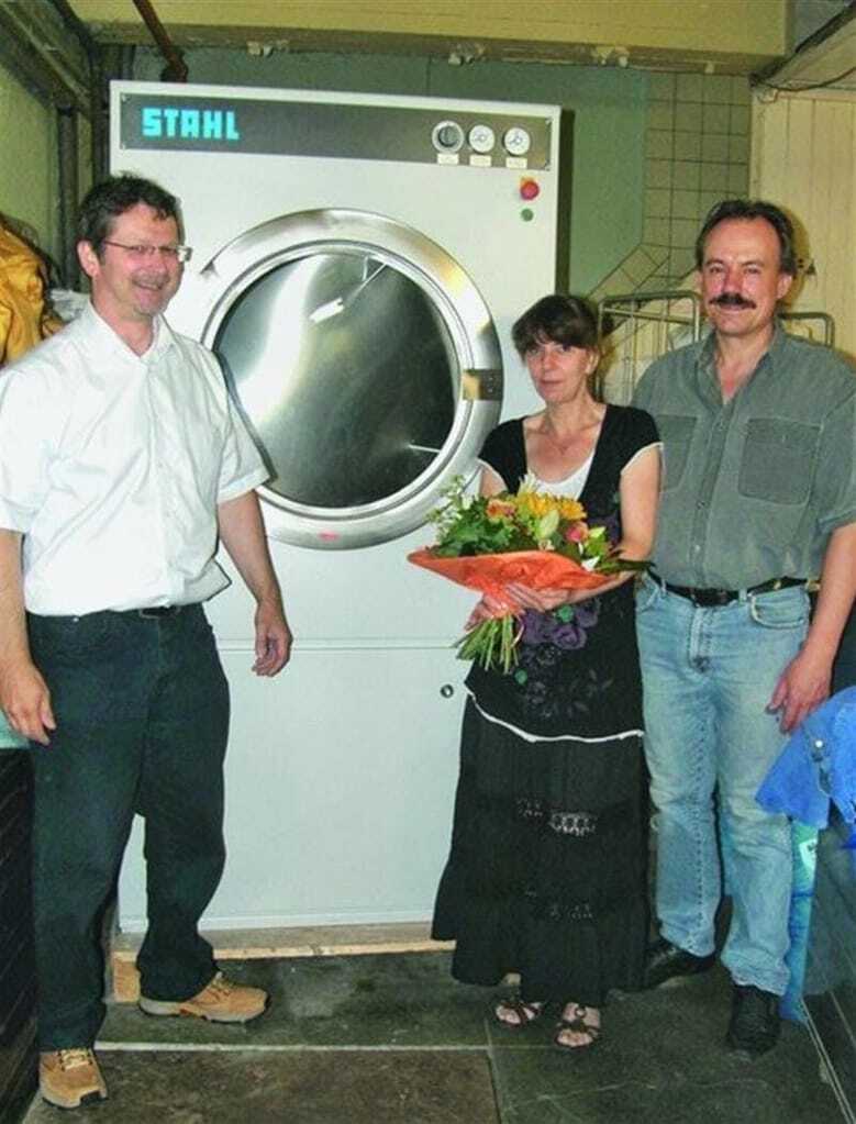 Der Gewinner ist eine Wäscherei aus Hilden. Wie Stahl mitteilt, war der ursprüngliche Gewinn der Wäscherei Block ein Gewerbetrockner T 134. Doch das Inhaberehepaar bestellte gegen einen Aufpreis den Hochleistungstrockner T 144. Norbert Mazal, Vertriebsrepräsentant des Herstellers in Nordrhein-Westfalen, gratulierte seinen Kunden.