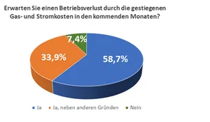 47 Prozent der Betriebe sind aktuell noch durch Versorgungsverträge vor Preissteigerungen geschützt. Viele Verträge laufen aber entweder Ende des Jahres aus oder drohen zu platzen. Die Betriebe, die schon jetzt gestiegene Kosten zu bewältigen haben, melden in der Spitze eine Steigerung ihrer Energiekosten um 840 Prozent, durchschnittlich von 166 Prozent.
