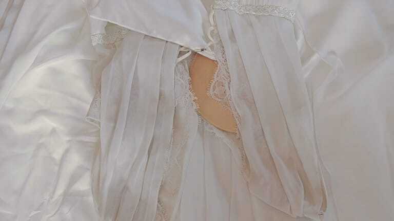Doch bei genauer Parallellegung der verschiedenen Zuschnittteile erkannte der Reinigungsbetrieb, dass der Rockstoff und die Stickerei der Schleppe keine Vergrauung zeigte. Die Ursache: eine Vergrauung als Lagerschaden, der durch den langen Aufenthalt unter der Folie entstanden ist. Die Weichmacher der Folie reagieren mit der lipophilen Polyesterfaser. Die optischen Aufheller sowie andere Avivagen verändern sich infolgedessen und werden gräulich.
