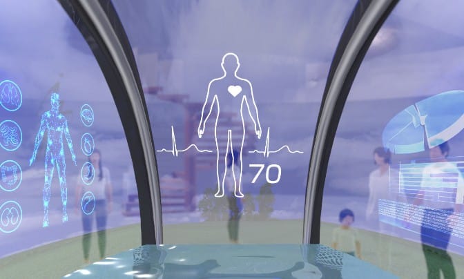 Mithilfe von künstlicher Intelligenz (KI) reagiert das Gerät auf die gewonnen Daten: Hat der Nutzer einen hohen Puls, startet ein beruhigendes Video oder sanfte Musik. Fällt die Körpertemperatur, strömt warmes Wasser nach.