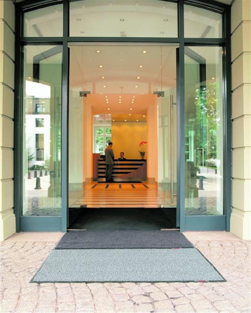Dr. Klingenberger:Bei der Anschaffung von Schmutzfangmatten ist zu beachten, dass sich die Matte dafür eignet, den eingetragenenSchmutz zu verbergen. Daher sollte die Oberfläche mindestens zweifarbig meliert sein, denn Schmutz ist auf unifarbenen Fasern leichter zu sehen. Bei mehrfarbigen Matten können auch drei Farben miteinander kombiniert werden. Generell gilt:Je dunkler die Faserfarbe einer Schmutzfangmatte ist, desto weniger sieht man den aufgenommenen Schmutz auf ihr. Für Matten, die im Leasingverfahren gewaschen werden, eignet sich als Poolware grau-weißes Material besonders gut. Fest verlegte Teppiche werden in ihrer Farbgebung häufig an die anderen Farben des Objektes angepasst.